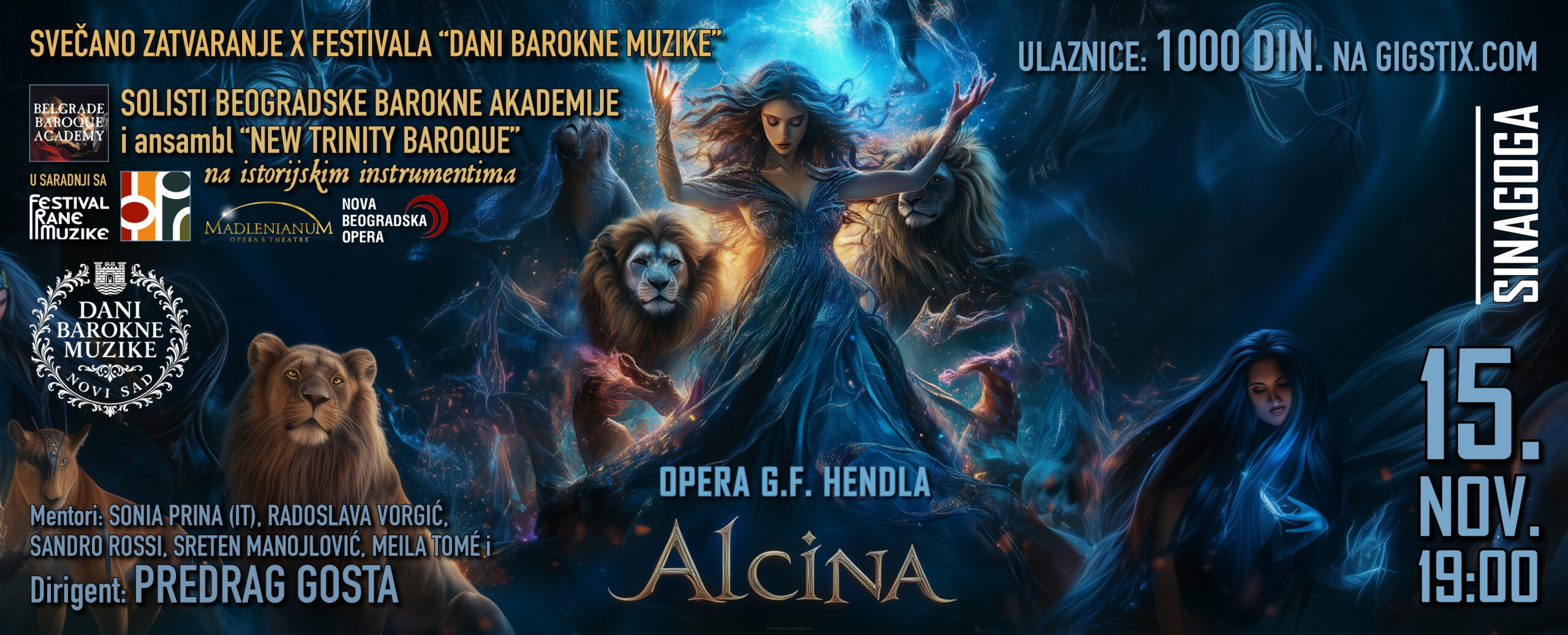 Završnica jubilarnog 10. festivala „Dani barokne muzike“ u Novom Sadu donosi jedinstven muzičko-scenski događaj – polukoncertno izvođenje opere „Alćina“ Georga Fridriha Hendla, jednog od najlepših i najpoetičnijih ostvarenja barokne opere.